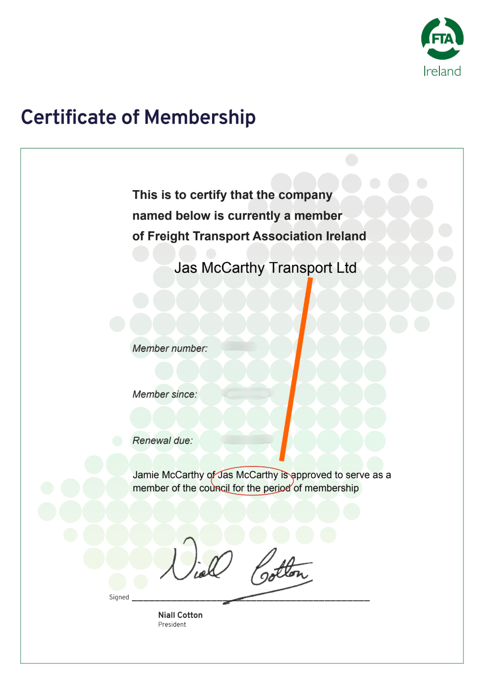 We are proud members of the Freight Transport Association Ireland, demonstrating our commitment to high industry standards and best practice in transport operations.